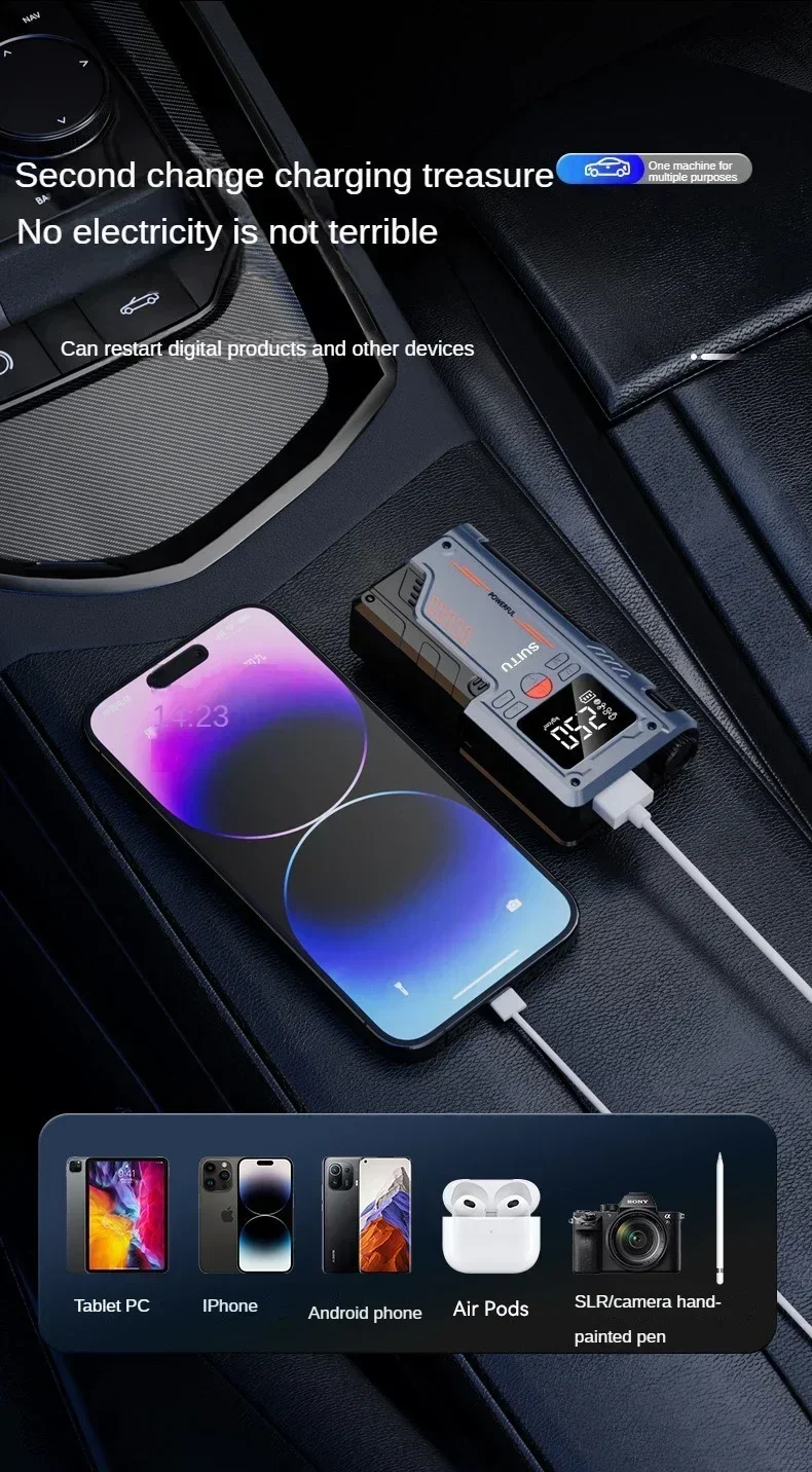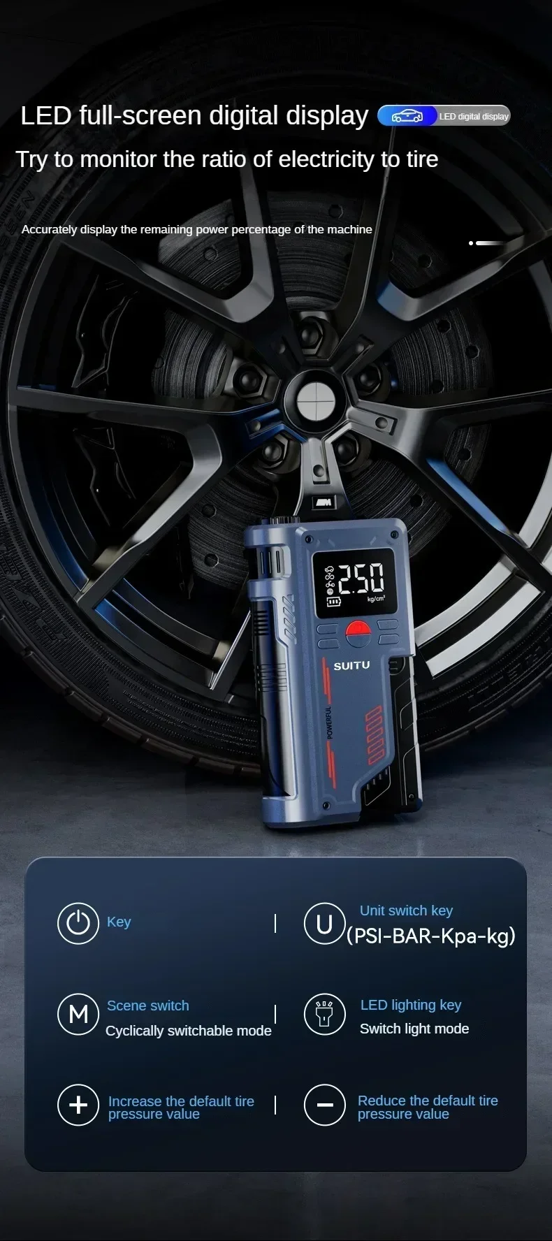 Portable Car Jump Starter & Air Pump 4 In 1 150PSI Air Compressor PowerBank Booster Car Starter Device Automotive Tyre Inflator