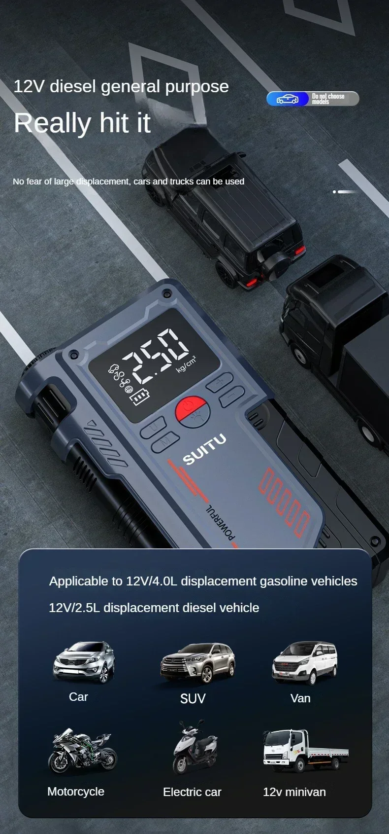 Universal Car Jump Starter w/ Tire Inflator All in One 8000mAh Auto Air Compressor Booster Power Bank Car Battery Starter Device